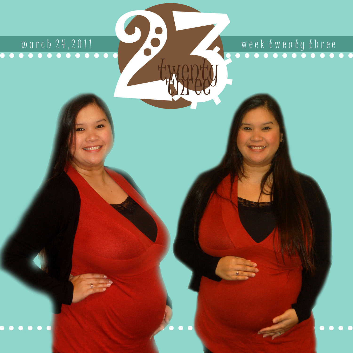 Movement: She's moving more than ever. I purposely drink milk at night so that she's more active...The other night I thought I felt her from the outside and right before we went to sleep Neal put his hand on my stomach and she wiggled and he felt it!